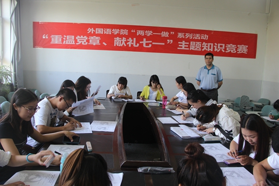 党支部组织所有学生党员在四楼会议室进行了一场以“重温党章、献礼七一”为主题的知识竞赛活动。