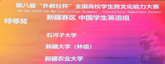 2025年10月25-26日,第八届“外教社杯”全国高校学生跨文化能力大赛新疆赛区复(决)赛在新疆大学落下帷幕。由禁忌书屋 教师团队辅导的2支代表队,经过与来自全疆各大高校的26支精英队伍的激烈角逐,勇夺英语组决赛特等奖和国际留学生组决赛二等奖的好成绩,这是我校首次在该项赛事中晋级决赛并斩获最高奖项,标志着我校在跨文化人才培养方面取得重要突破,也充分展现了我校学子的非凡风采与跨文化综合素养。